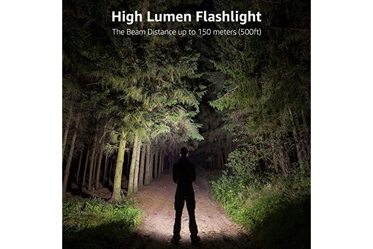 SUPER BRIGHT & LONG-LASTING - Equipped by LED, the beam distance of flashlight is up to 492ft. Luminous flux is about 140 lumen in full brightness. Easily light up an entire room.