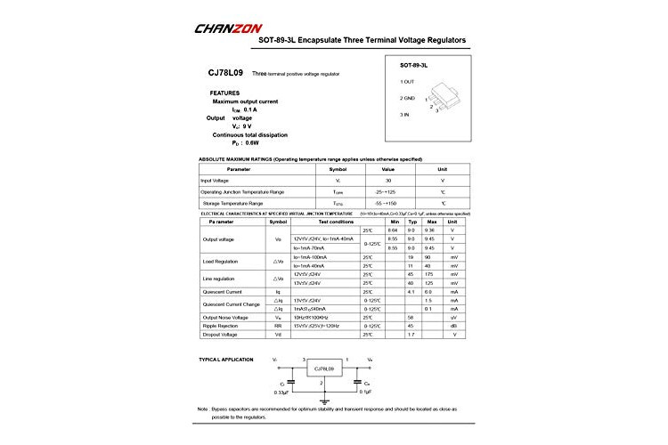 Chanzon 78L09 SOT-89 Positive Fixed Voltage Regulator IC, SMD Pack Three Terminal Positive Regulator for Power Management (Pack of 50pcs)