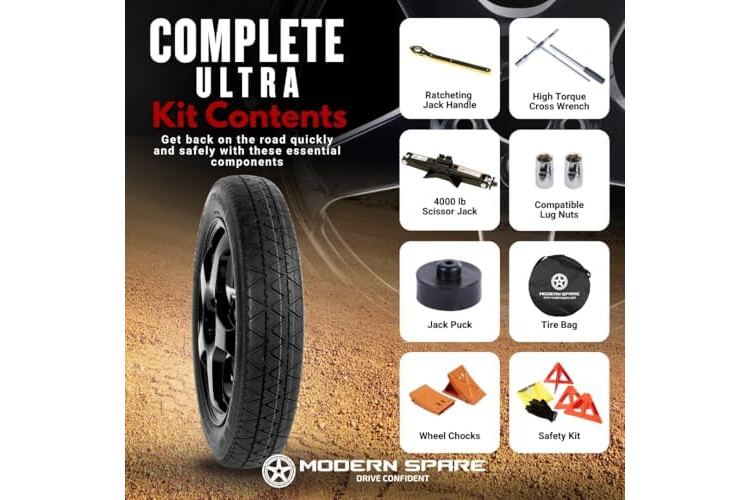 Availabe Variations: Complete Spare Tire Changing Kit: Includes a Modern Spare-exclusive 4,000 lb ...