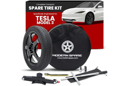 Modern Spare Complete Compact Spare Tire Kit With Carrying Case - Fits 2017-2025 Tesla Model 3
