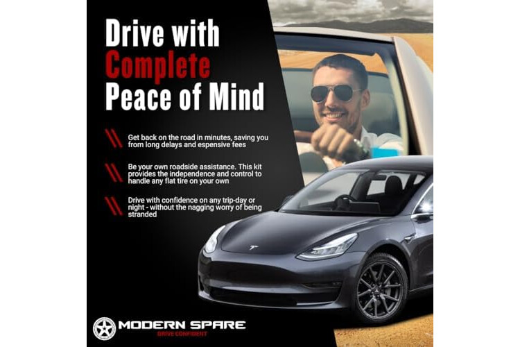 Modern Spare - Fits 2017-2026 Tesla Model 3 - Complete Compact Spare Tire Kit With Carrying Case