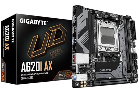 GIGABYTE A620I AX (AM5/ LGA 1718/ AMD/ A620/ Mini-ITX/ 5-Year Warranty/ DDR5/ Single M.2/ PCIe 4.0/ USB 3.2 Gen1 Type-C/Realtek Wi-Fi 6E/ Realtek 2.5GbE/ Q-Flash Plus/PCIe EZ-Latch/Motherboard)
