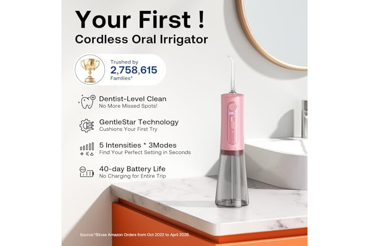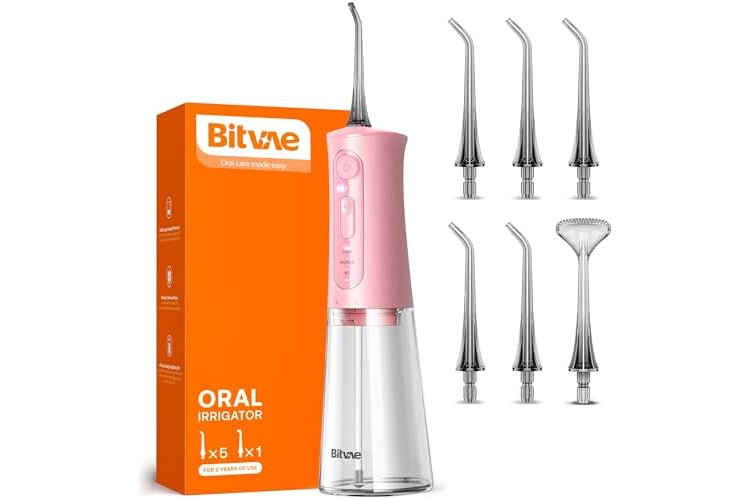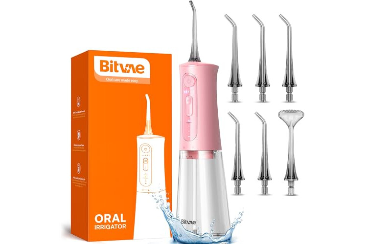 Bitvae Water Dental Flosser Teeth Picks, Cordless Portable Oral Irrigator, Powerful and Rechargeable Oral Irrigator, Brace Care, IPX7 Waterproof Water Dental Picks for Cleaning, Quartz Pink