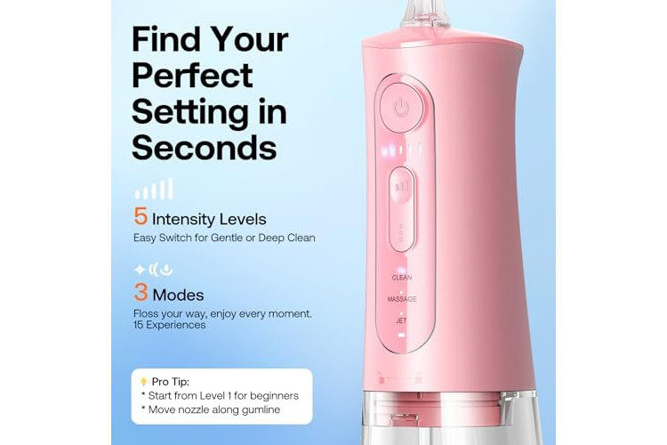 Cleaning Options for Comprehensive Oral Care: Featuring 3 modes and 5 intensity settings, our product caters to gentle, sensitive cleaning or deep, powerful cleansing for a personalized experience, promoting gum health, fresh breath, and bright smiles