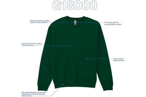 Gildan Adult Fleece Crewneck Sweatshirt, Style G18000, Multipack, Forest Green (36-pack), Large