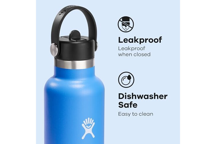 LEAKPROOF: Say goodbye to leaky water bottles. The Flex Straw Cap is leakproof when closed. Simply close it shut and toss it into your bag without worry. Sip effortlessly with one hand, thanks to the easy-to-use straw design.