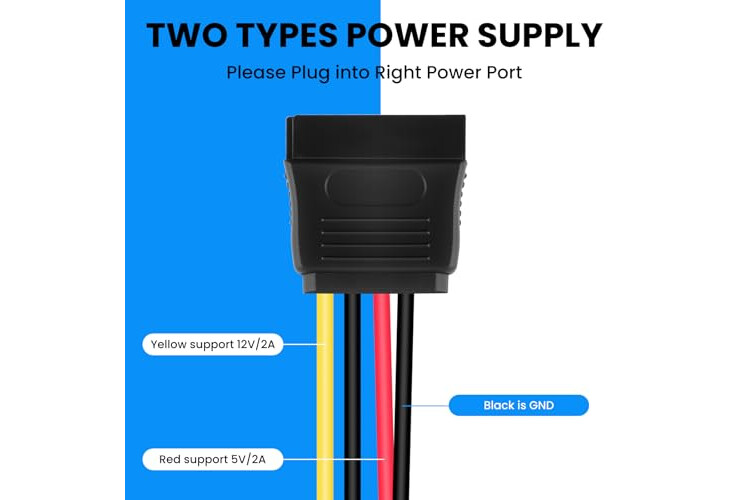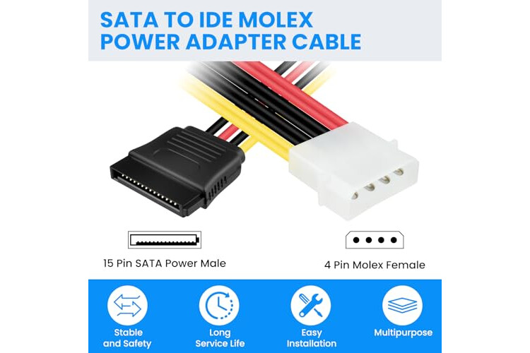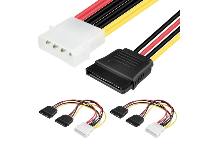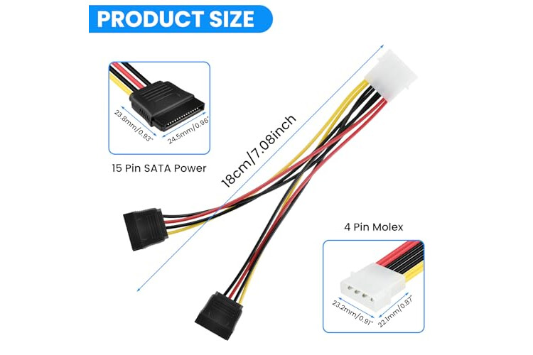 IDE Molex to SATA Power Cable, Converts 4-Pin male plug into 2x 15-Pin Serial ATA Female Connectors.