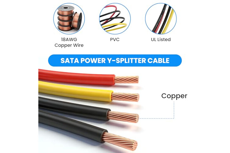 SDTC Tech 4 Pin Male IDE Molex to 15 Pin Female Dual SATA Power Splitter Adapter Cable 18AWG Copper Serial ATA Hard Drive Extension Cable (20cm) - 2 Pack