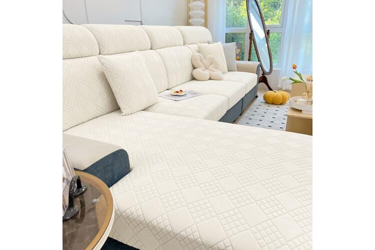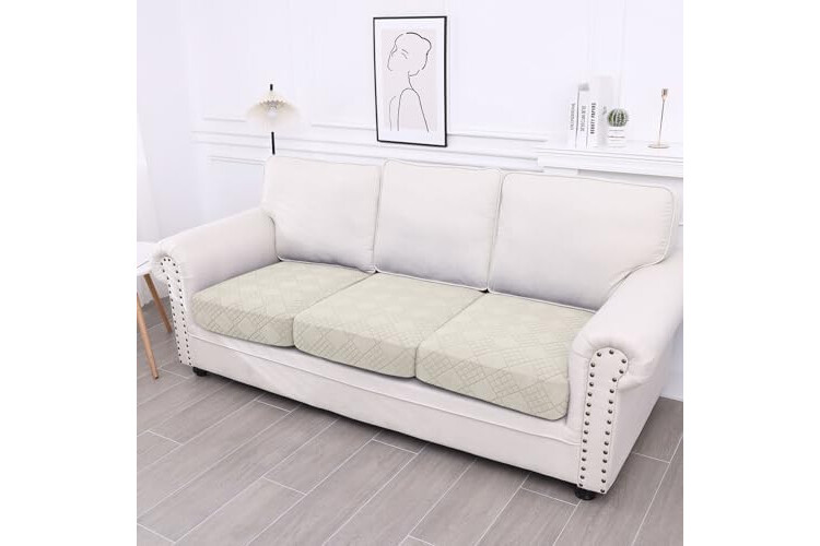 [Great Fit] Made of a strong, soft, high-stretch jacquard fabric, this innovative cushion slipcover fits perfectly. One-size-fits-all couch seat covers are a feature; please measure before purchase.