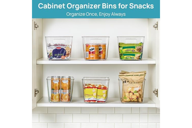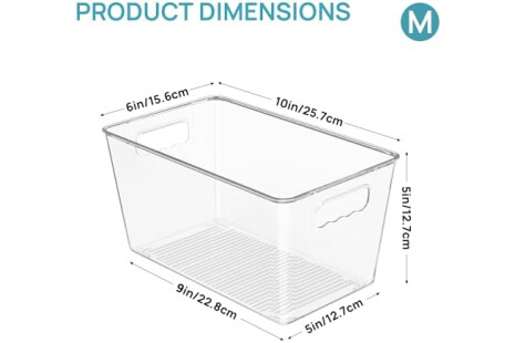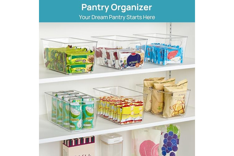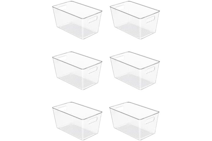 Vtopmart 6 Pack Clear Storage Bins, Pantry Cabinet Organizer Bins with Handle for Pantry Organizer and Storage, Plastic Bins for Fridge, Cabinet, Kitchen, Countertops, Cupboard, Freezer, Medium