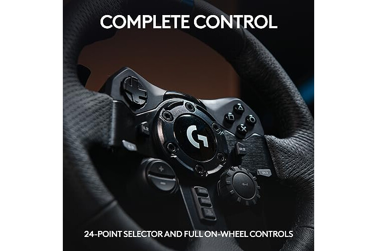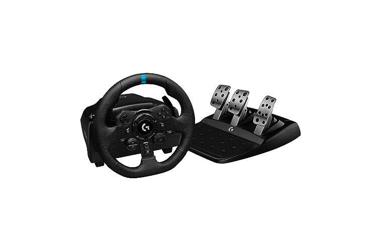 Logitech G923 Racing Wheel and Pedals, TRUEFORCE up to 1000 Hz Force Feedback, Gaming Steering Wheel PS5, PS4, PC, Mac, Genuine Leather- Black