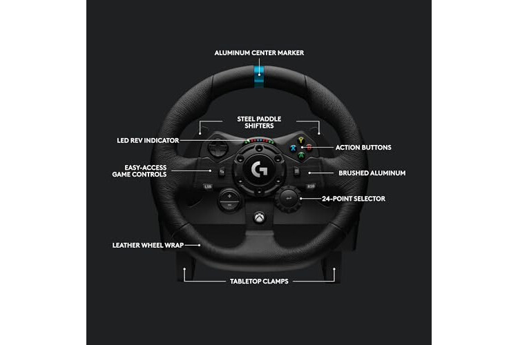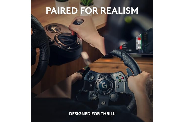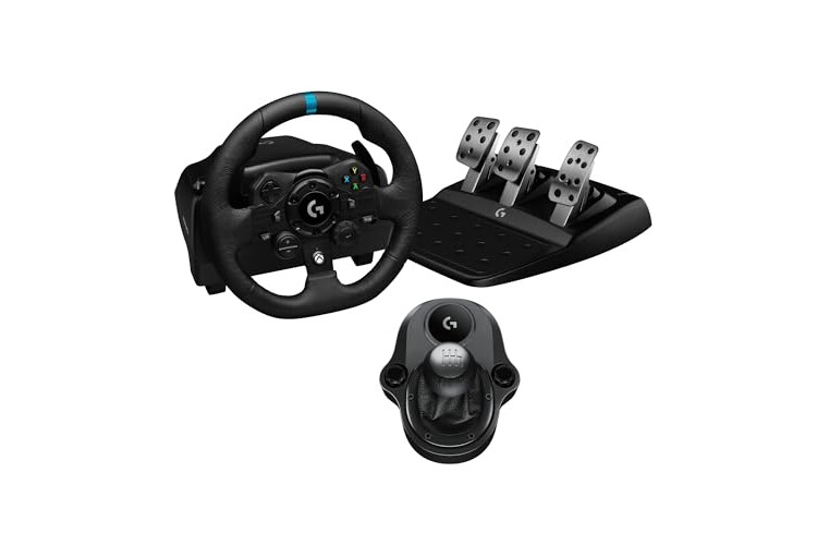 Logitech G923 Racing Wheel and Pedals, TRUEFORCE Force Feedback, Real Leather + Logitech G Driving Force Shifter - Xbox X|S, Xbox One, PC, Mac - Black