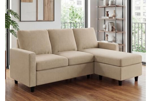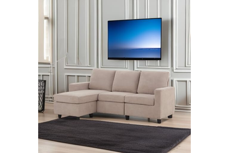 HONBAY L Shaped Couch with Linen Fabric,Convertible, Reversible Sectional Sofa for Small Space, Dark Beige