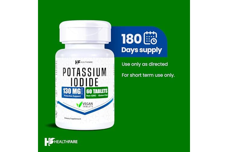 HealthFare Potassium Iodide Tablets | 130 mg | 360 Fast-Dissolving Tablets (6 Pack) | Ki Pills | Long Shelf Life | Non-GMO