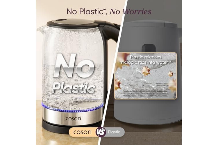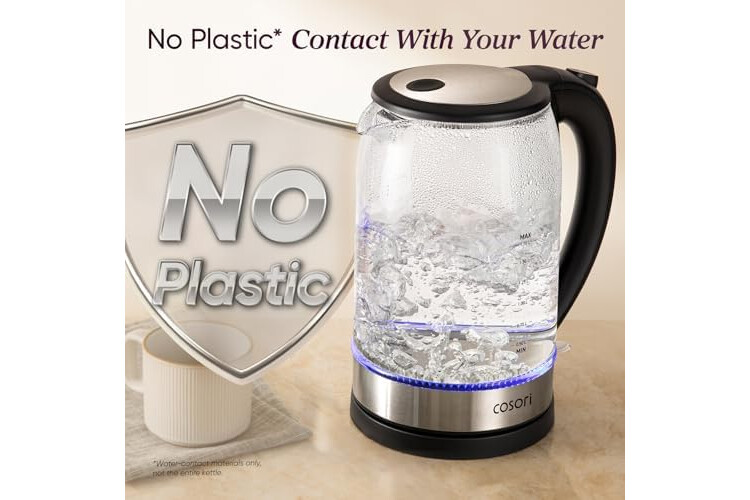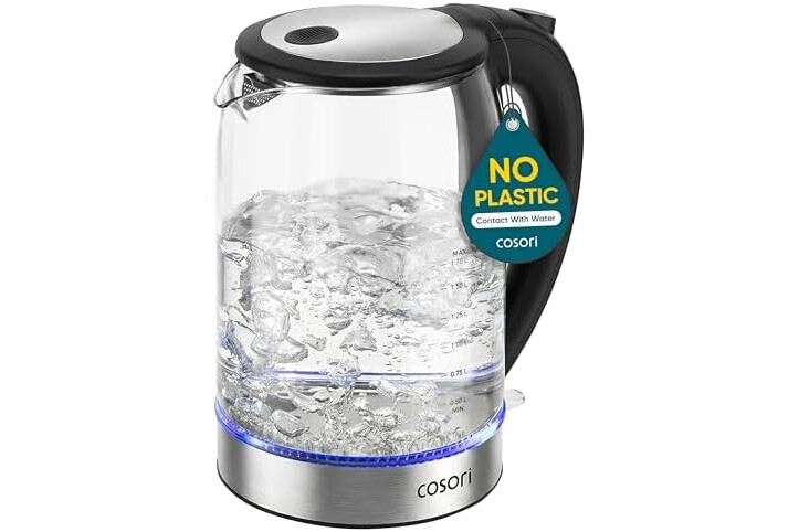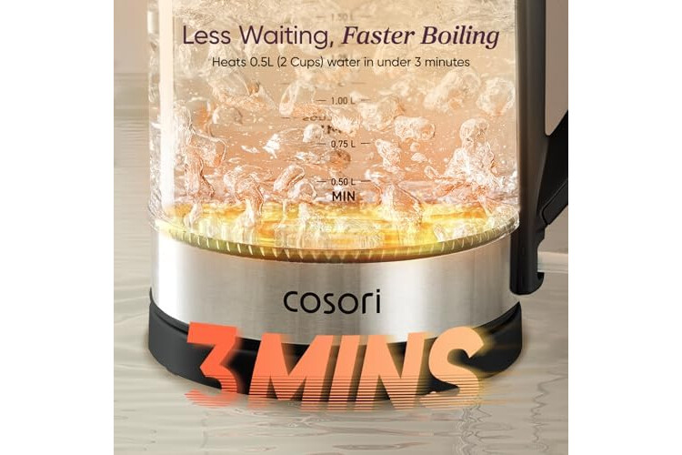 Cosori Electric Kettle, No Plastic Contact With Water, Wide Mouth For Easy Cleaning, Auto Shut Off, 1.7L Tea Kettle & Hot Water Boiler, Water Heater & Teapot, Borosilicate Glass, Black, 1500W