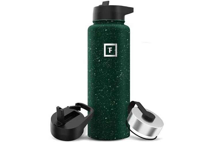 IRON °FLASK Camping & Hiking Hydration Flask with Straw, Wide Mouth Insulated Stainless Steel Sports Water Bottle - 40 oz Dark Pine Speckle