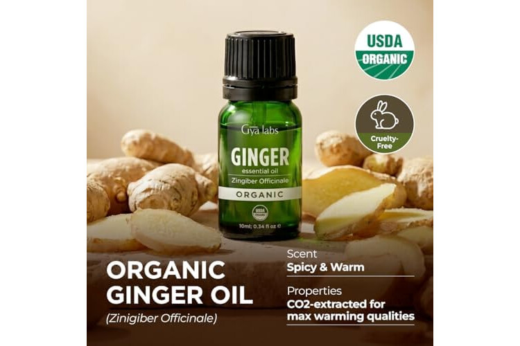 Gya Labs USDA Certified Organic Ginger Essential Oil for Warming Massage, Diffuser - for Topical Use, Hair, Aromatherapy, Spicy & Energizing Aroma - DIY Candle Making Scents - 0.34 Fl Oz