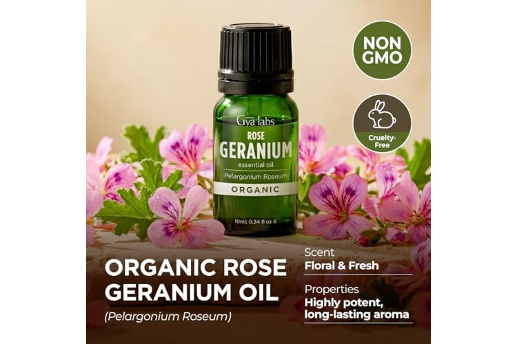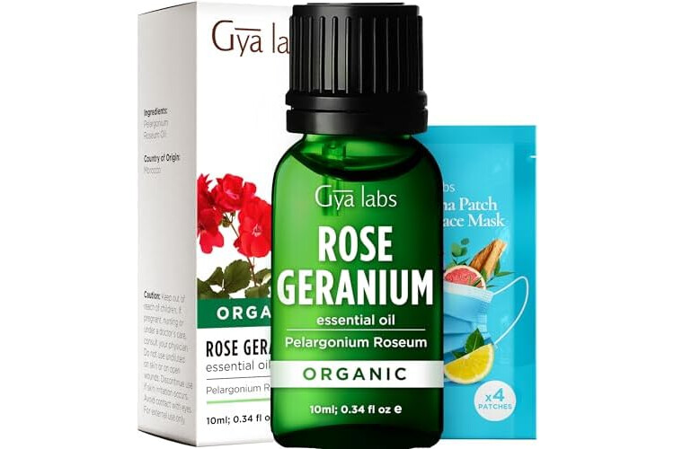 Gya Labs Organic Rose Geranium Essential Oil - 0.34 Fl Oz - for Skin, Hair, Diffuser, Aromatherapy, DIY Candle Making Scents