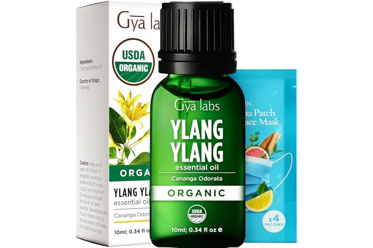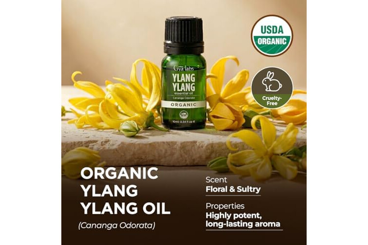 Gya Labs USDA Certified Organic Ylang Ylang Essential Oil - for Skin, Hair, Diffuser, Aromatherapy, DIY Candle Making Scents - 0.34 Fl Oz