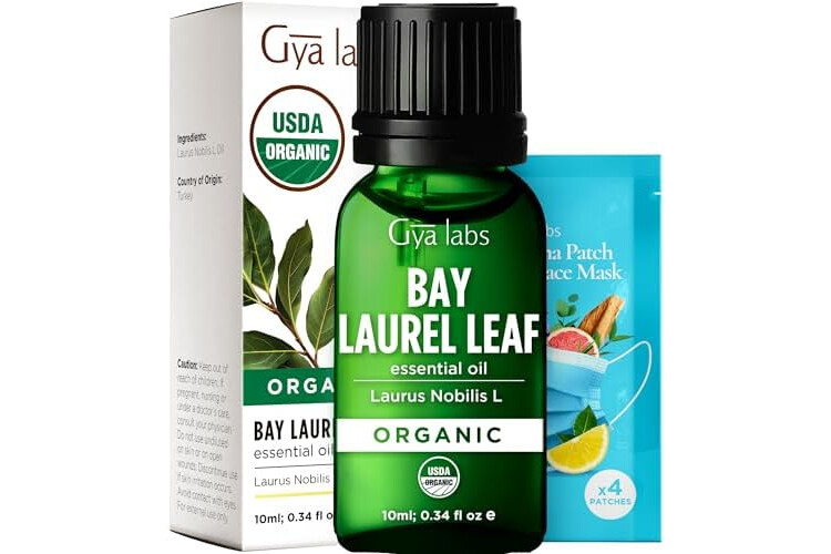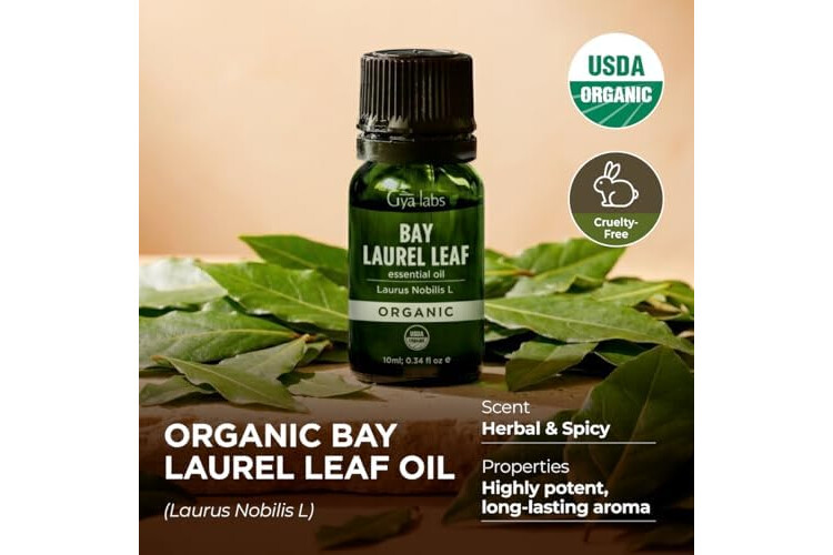 Gya Labs USDA Certified Organic Bay Leaf Essential Oil for Massages, Skin, Hair, Diffuser, Aromatherapy, DIY Candle Making Scents - 0.34 Fl Oz