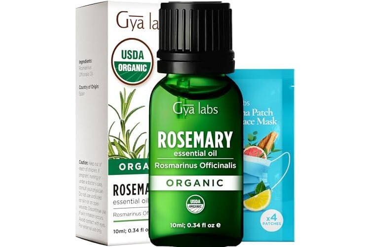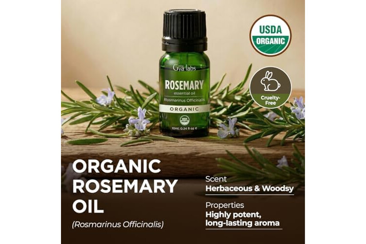 Gya Labs Organic Rosemary Essential Oil - 0.34 Fl Oz - for Skin, Hair, Diffuser, Aromatherapy, DIY Candle Making Scents