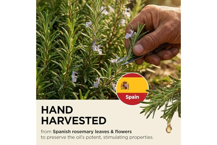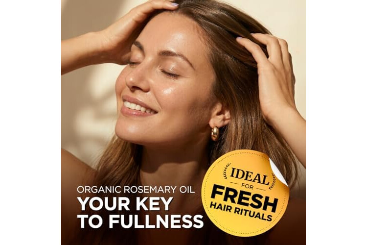 Organic rosemary essential oil for hair. Rosemary oil may have benefits in improving hair appearance for fuller-looking hair. Massage 4-5 drops into scalp 20 mins before bath, 1-2 times a week.