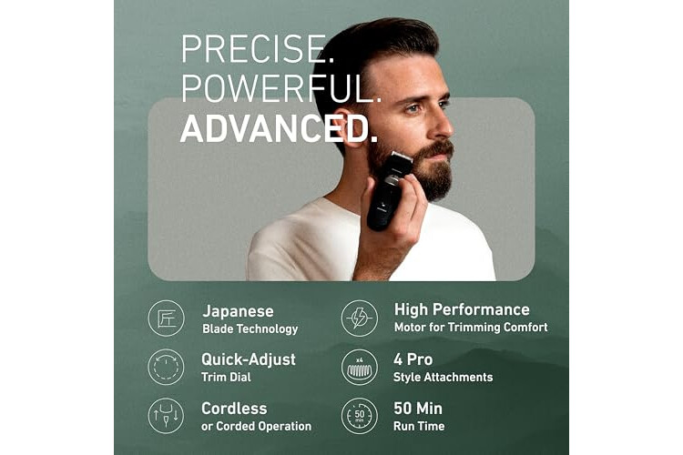 4 Comb Attachments: Slide-on comb attachments neatly align hair for even trimming in different lengths; use the detail attachment for precise trimming and stray hairs with this electric beard trimmer for men