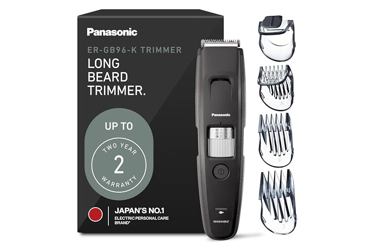 Panasonic Long Beard Trimmer for Men, 58 Length Settings and 4 Attachments to Cut and Detail, Corded or Cordless Beard Trimmer for Men – ER-GB96-K (Black)