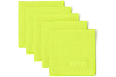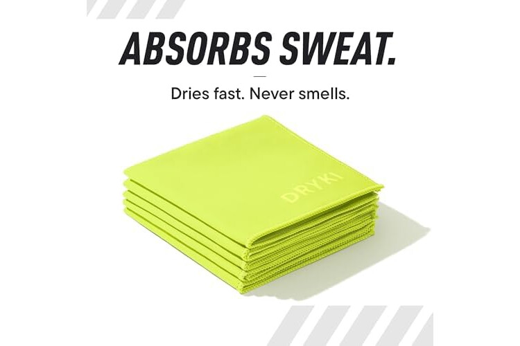 DRYKI Sweat Absorbing Handkerchiefs - The Original Pocket-Sized Sweat Towels - Quick-Dry Microfiber Sweat Rags for Face, Hands, & Body - Men & Women - Gym, Sports, and Work (High-Vis Yellow: 5 Pack)