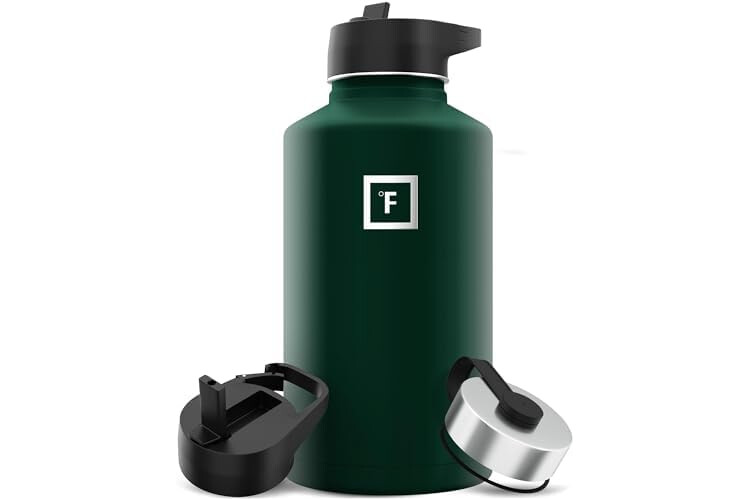 IRON °FLASK Camping & Hiking Hydration Flask with Straw, Wide Mouth Insulated Stainless Steel Sports Water Bottle - 64 oz Dark Pine