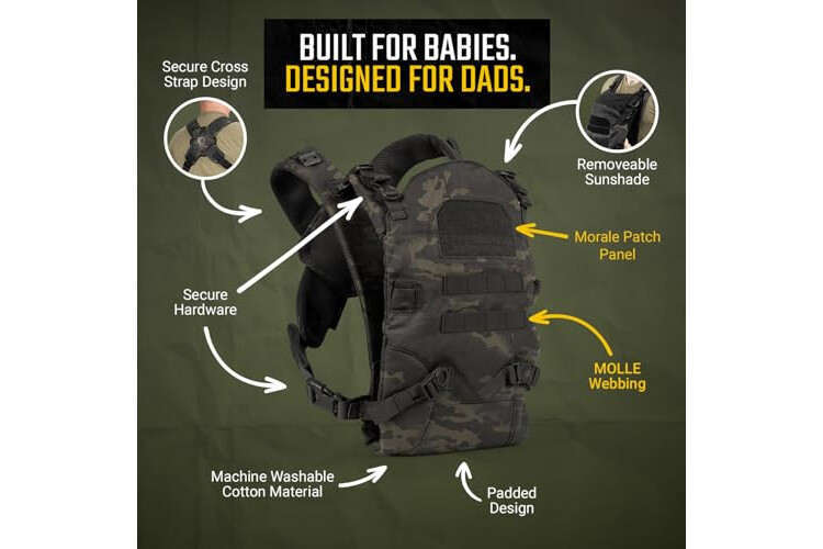 Tactical Baby Gear Tactical Baby Carrier for Dads – Ergonomic, Hip Healthy & Comfortable for Infants and Toddlers (8–33 lbs) (Black Camo)