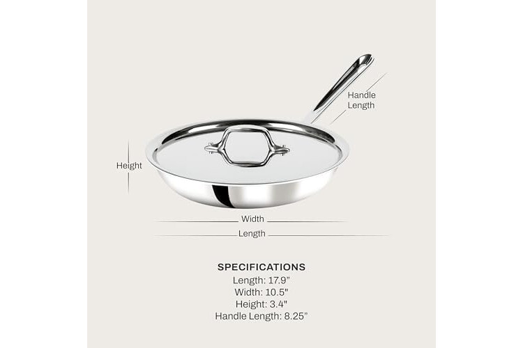 Experience professional-level cooking with this 10 inch stainless steel fry pan with lid, enhanced by All-Clad's D3 tri-ply construction for impeccable heat distribution and retention