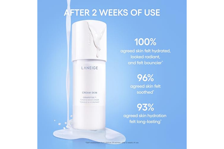 LANEIGE Cream Skin Toner & Moisturizer: Lightweight Refillable Korean Milky Toner with Ceramide & Peptide for Hydration, Firming, & Barrier Support