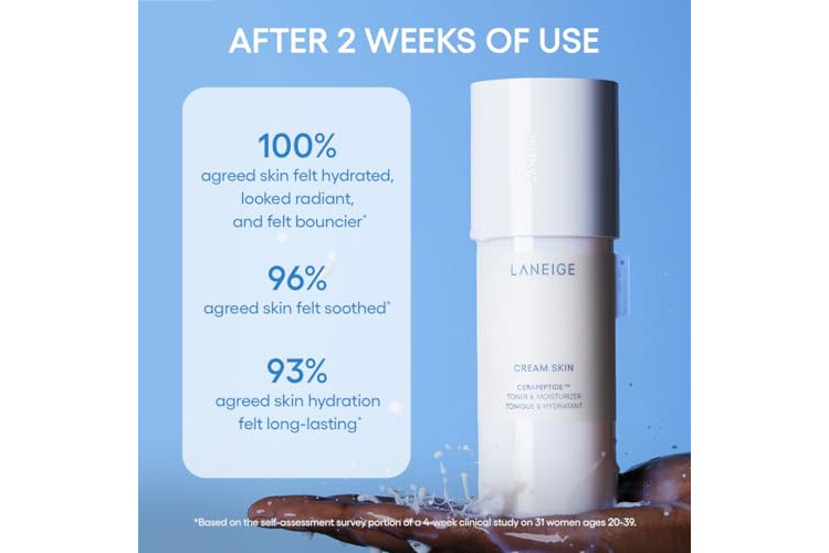 LANEIGE Cream Skin Toner & Moisturizer: Lightweight Refillable Korean Milky Toner with Ceramide & Peptide for Hydration, Firming, & Barrier Support