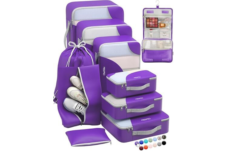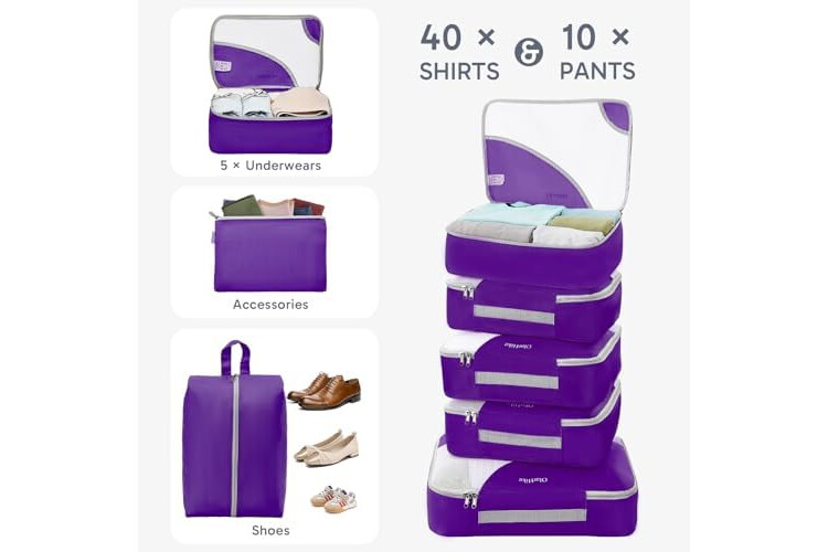 ALL INCLUDED 10 Set Durable Packing Cubes for Suitcases,OlarHike Essentials for Travel, UPGRADED Anti-Tear Stitching, NEW Improved Luggage Packing Organizers for Travel Accessories (Purple)