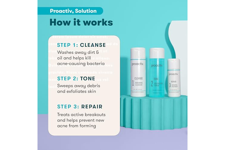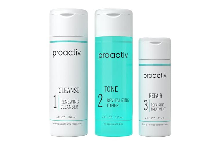 Proactiv 3 Step Acne Treatment - Benzoyl Peroxide Face Wash, Repairing Acne Spot Treatment for Face And Body, Exfoliating Toner - 60 Day Complete Acne Skin Care Kit