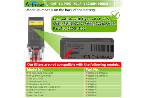 【Fit below models】Compatible with Dyson V11 Animal, V11 Torque Drive, V11 Cordless, V11 Complete, V11 Extra, V11 Absolute, V15 Detect, V15s Detect Submarine Vacuum Cleaner. And also compatible with Dyson filter replacement model: Graded SV14, SV15, SV17, SV22, SV28.