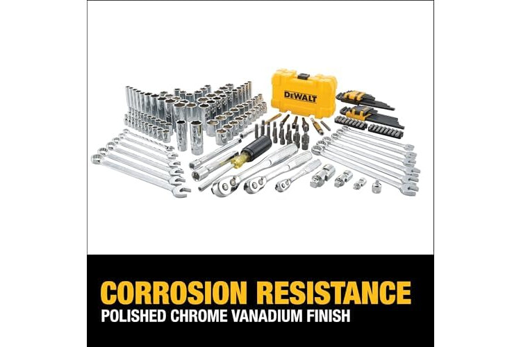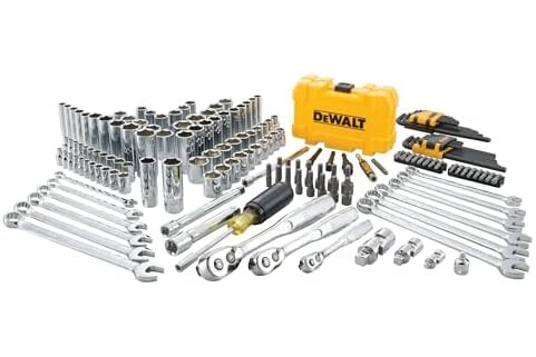 DEWALT Mechanic Tool Set with Case, Socket Set Metric and Standard Full, 1/4" & 3/8" Drive, Hex Keys and Specialty Tools, 168-Piece (DWMT73803)