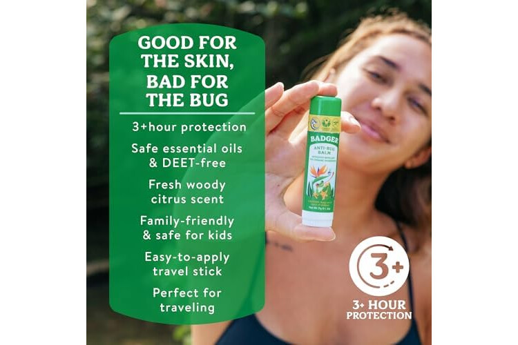 Badger Bug Repellent, Easy to Use Travel Stick, DEET-Free Mosquito Repellent & Insect Protection, Certified Organic Essential Oil Balm