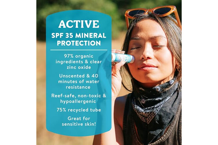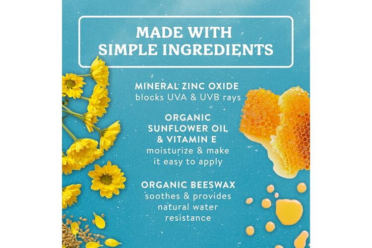 97% ORGANIC INGREDIENTS: Mineral sunscreen cream & face stick protect & nourish with zinc oxide, organic beeswax & organic plant oils & butters. Unscented, non-comedogenic & chemical-free