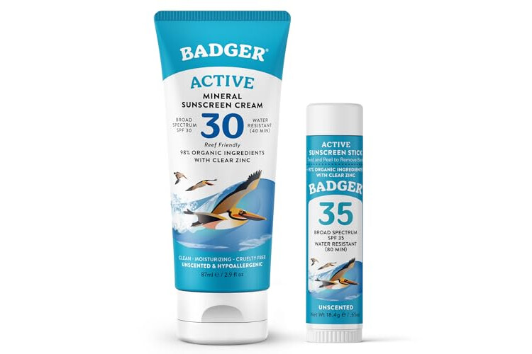 Badger Mineral Sunscreen Combo, SPF 30 Cream & SPF 35 Face Stick, Organic Ingredient with Mineral Zinc Oxide, Unscented Reef Safe Sunscreen Set, Broad Spectrum, Water Resistant, 2-Count
