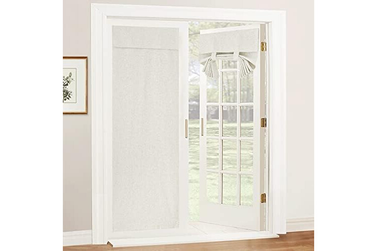 RYB HOME 100% Blackout Tricia Door Curtains, Linen Textured Blend Thermal Insulating Privacy French Door Window Tie Up Shades Sidelight Curtains for Kitchen, W 34 x L 69 inches, Linen, 1 Panel