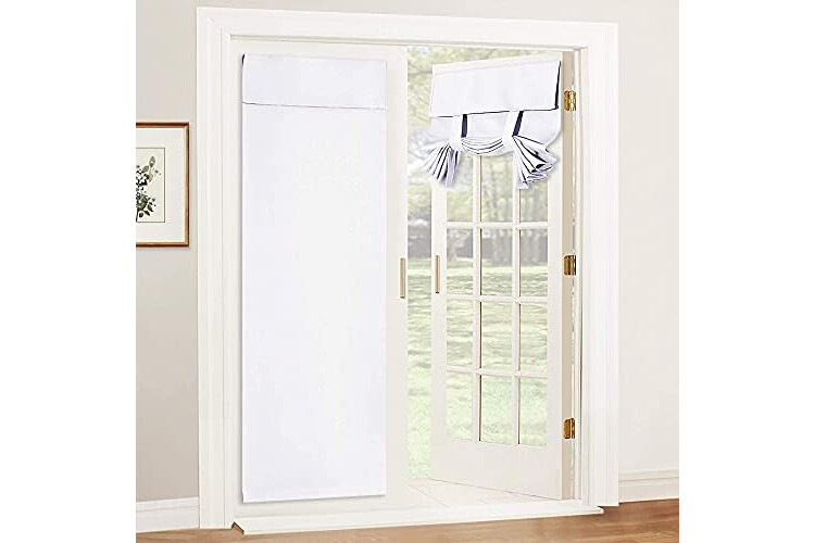 RYB HOME Curtain for French Door - Tool Free Self Adhesive Tricia Window Curtain Thermal Insulated Privacy Blinds for Sidelight Drape Energy Efficient Room Darkening, W 26 x L 69, Pure White, 1 Pc