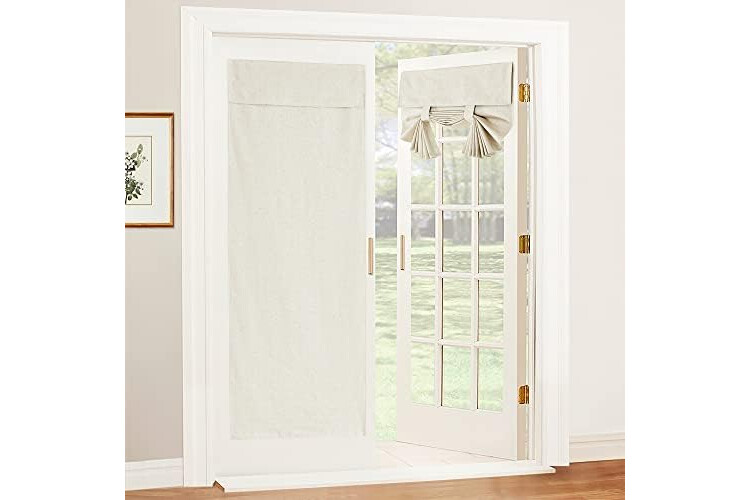 RYB HOME 100% Blackout Tricia Door Curtains, Linen Textured Blend Thermal Insulating Privacy French Door Window Tie Up Shades Living Room Curtains for Kitchen, W 34 x L 69 inches, Ivory, 1 Panel