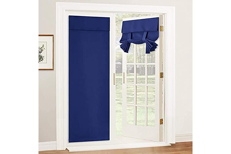 RYB HOME Tricia Blackout French Door Curtain - Room Darkening Window Drape for Patio, Sidelight & Glass Doors, W 26 x L 69, 1 Pc, Navy Blue
