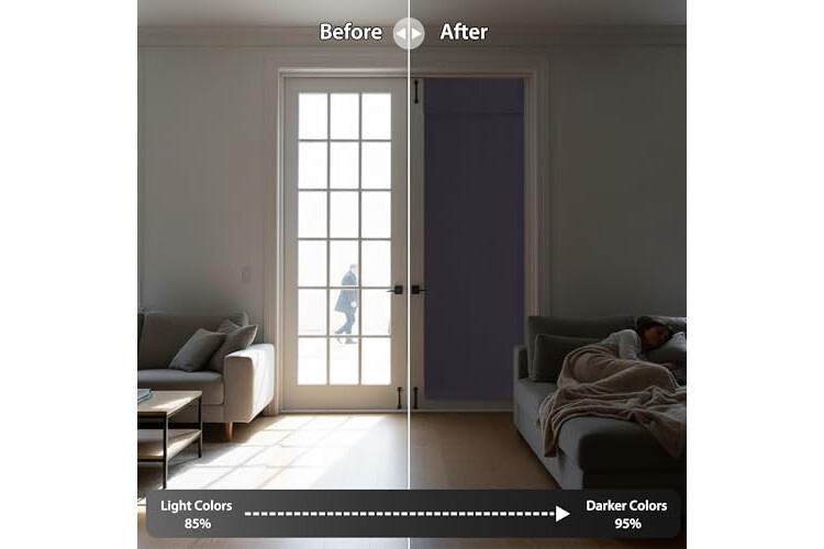 BLOCK SUNLIGHT & BALANCE TEMPERATURE – Effectively blocks 85%-95% of sunlight and UV rays (Darker colors work better), protecting your furniture from sun exposure, while ensuring your room stays dark for daytime sleeping or movie nights.The Thermal Insulated material acts as a barrier against summer heat and winter chill, helping you save on energy bills while keeping your room comfortable.
