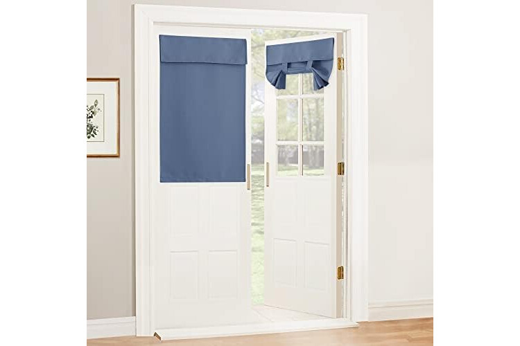 RYB HOME Blackout Door Curtains - Self Sticky Vertical Blinds Privacy Thermal Insulated Tricia Drapery for Patio French Door Sidelight Curtain, Wide 26 x Long 40 inch, 1 Panel, Stone Blue