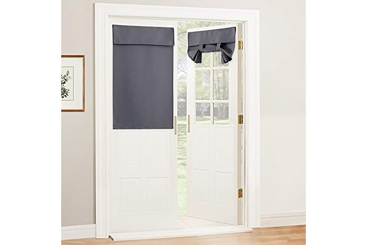 RYB HOME Blackout Door Curtain - Privacy Thermal Insulated Tricia/Front/Patio French Door Window Curtain Tie up Shade, W30 x L40 inch, 1 Panel, Gray
