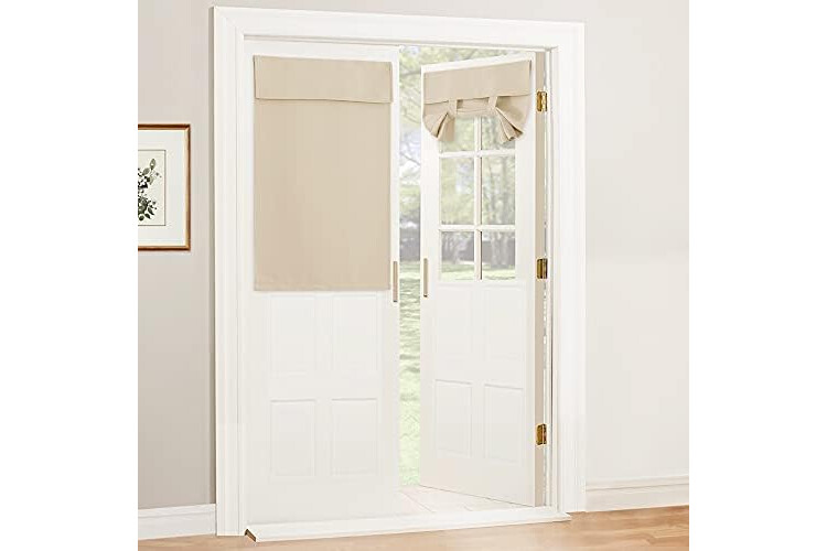 RYB HOME Blackout Door Curtain - Privacy Thermal Insulated Front/Tricia/Patio/French Door Window Curtains Sidelight Curtain Tie up Shade, W30 x L40 inch, 1 Panel, Beige