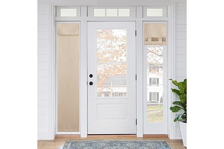 RYB HOME Sidelight Door Curtains for Front, Privacy Half Window Curtains Thermal Insulate Covering for Patio/Glass/French Door, 12 inch x 72 inch, Beige, 1 Panel